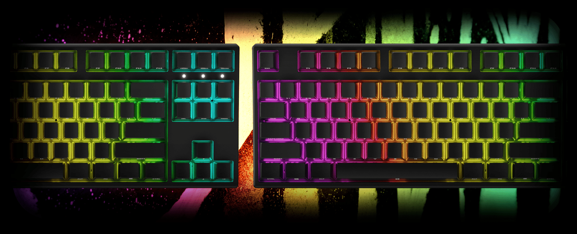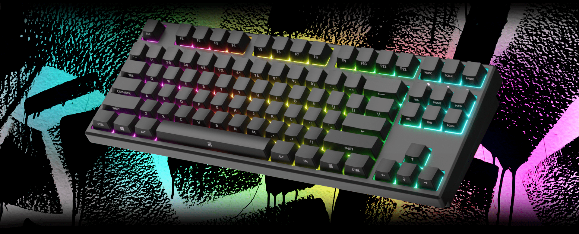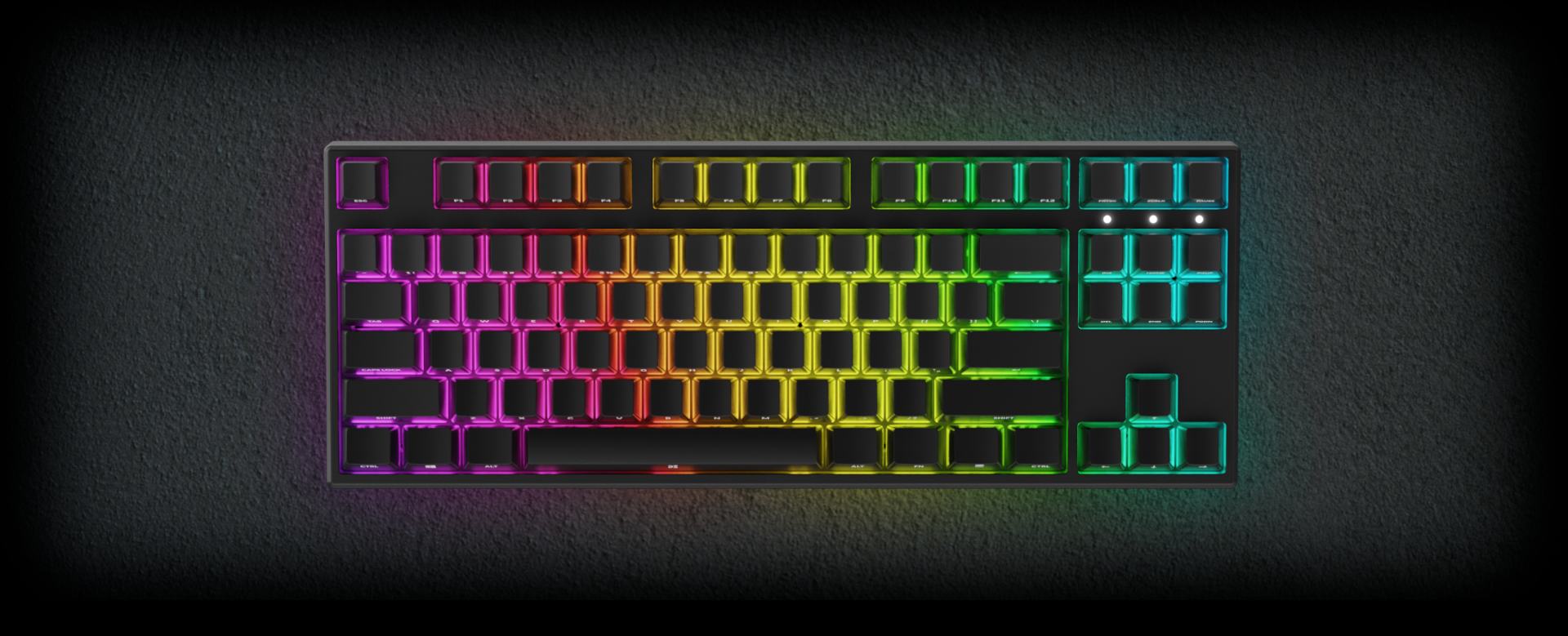 16 M RGB led light system implemented in DreamKey TKL keyboard gives a user unlimited possibilities in changing colors, speed, direction of chosen colors for every key or your personal choice of keys. There is no room for blandness! Thanks to the advanced color configurator, you can quickly change settings as you wish by using special key shortcuts! You can project a beautiful illumination of colors and choose your favorite configuration or customize the color scheme to your personal liking!