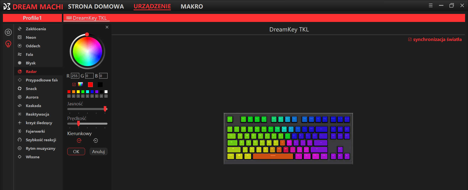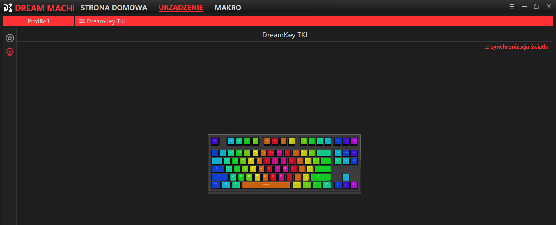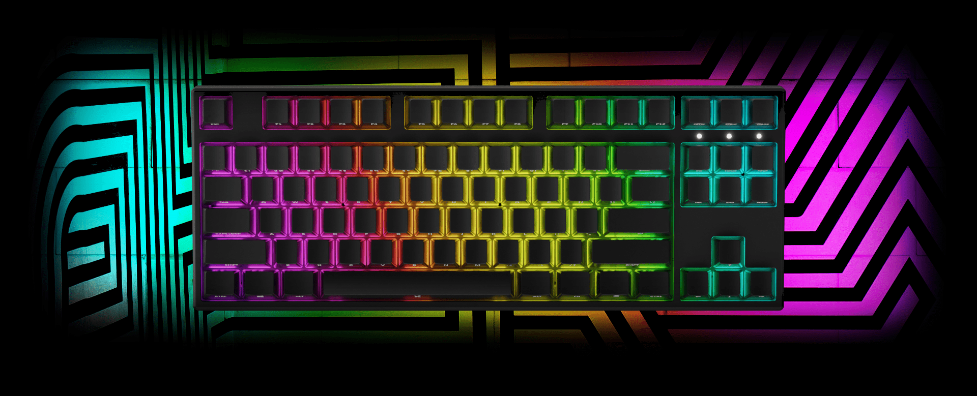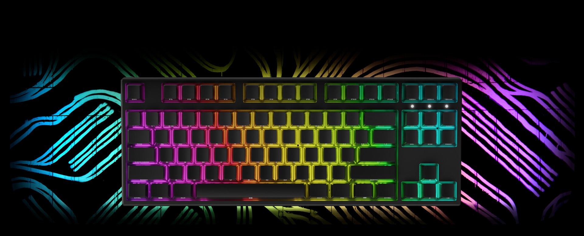 By using advanced software added to the DreamKey TKL keyboard, you can change settings of effects and shortcuts in your keyboard. Make your own original compositions by your selection of individual colors of each key or choose one of 16 ready-to-use visual effects. You can freely modify every animation as you like, by changing chosen color set lighting of led effect and speed of chosen animation move.